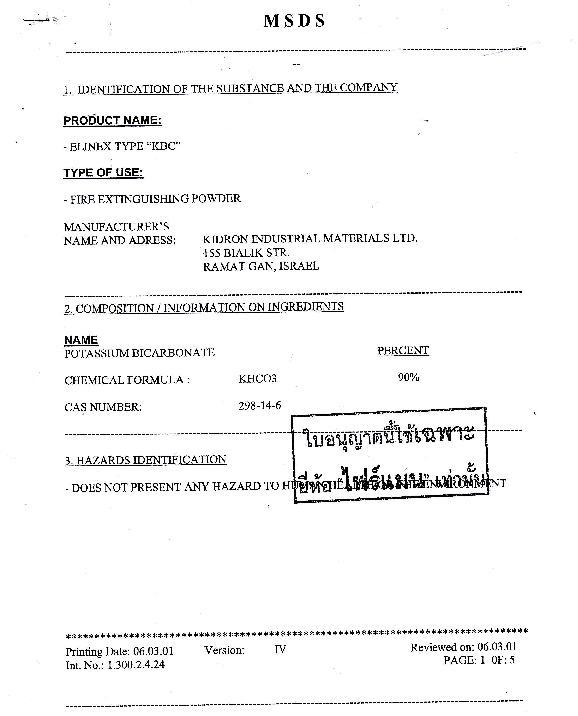 ผงเคมีดับเพลิง ผงเคมีสำหรับเติมถังดับเพลิง ยี่ห้อ Fireman
